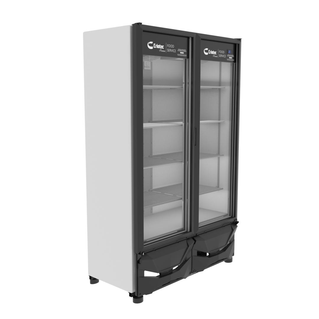 La máxima capacidad para su punto de venta. Este Enfriador Vertical de 42 pies cúbicos (886 L) con dos puertas ofrece una exhibición masiva e impactante. El refrigerante R290 garantiza una refrigeración de alto desempeño (entre 2°C y 5°C), combinando la gestión eficiente de grandes inventarios con la mejor sostenibilidad operativa. Ideal para la conservación y exhibición de diversas gamas de productos como embotellados, lácteos, embutidos, pasteles, refrescos, etc.